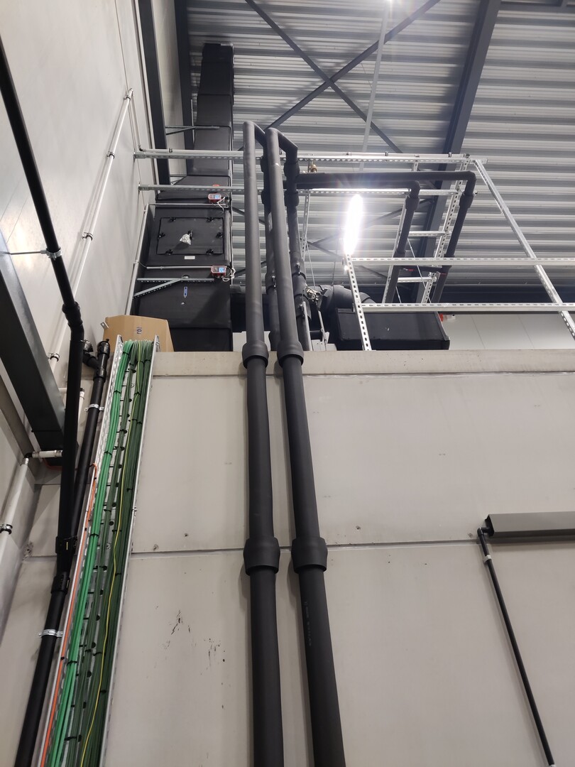 De volledige cleanroom van 475 m² werd op amper vier weken gerealiseerd — een knappe prestatie gezien de technische complexiteit en de hoge kwaliteitsnormen (ISO 8). De werken startten eind november en het project werd nog vóór Kerstmis volledig afgewerkt.